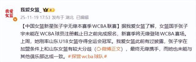 之前有消息說,山東高速女籃正在和張子宇談判,希望她能加入山東高速女籃,新賽季開始代表山東出戰WCBA。可惜的是,根據我愛女籃的報道,張子宇與山東高速女籃的談判未能達成一致,以至于張子宇錯過了11月18日的球員注冊日,使得張子宇將會無緣新賽季的WCBA聯賽。
