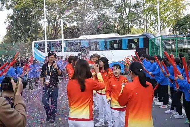 11月16日,中國武漢車谷江大女足回到武漢。